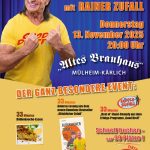 Veranstaltungen Subscribe Aktuelle Termine Okt. 31 Oktober 31 @ 22:00 - November 1 @ 2:30 Halloween Fete im Alten Brauhaus Koblenz Nov. 13 20:00 - 22:00 99 Minuten „Speeddating“ mit Rainer Zufall Nov. 18 18:00 - 23:00 2. Komische Nacht Dez. 5 Dezember 5 @ 22:00 - Dezember 6 @ 2:00 Nikolaus-Vorfete Dez. 6 9:00 - 11:30 Der NEXT(e) bitte Talkshow mit Frühstück im Alten Brauhaus Koblenz Kalender anzeigen 04.07.2025 Altstadtfesteröffnung 03.07.2025 Hochzeit von Vivi und Mayli 30.06.2025 Betriebsfahrt nach Speyer Motorrad Segnung am 1. Mai im Altes Brauhaus https://www.youtube.com/watch?v=T7Jcswvfy9M&t=3s 07.06.2025 Mayli wird Papa – Feier 03.05.2025 70-80er Jahre Fete « Ältere Einträge